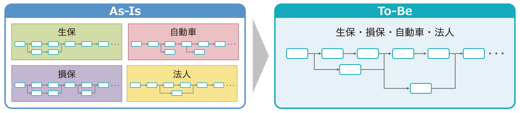 保険種別ごとに複雑化した業務プロセスを洗い出し標準化。経営視点の目的意識を現場と共有し、全社横断の改革を実行